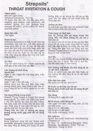 Cách dùng Viên ngậm Strepsils Throat Irritation & Cough